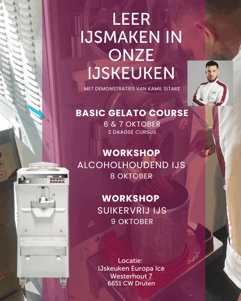 In oktober zullen er verschillende ijs cursussen en workshops gehouden worden in de dan net nieuw geopende IJskeuken van Europa Ice! Daar wil je toch bij zijn? Of je nu al ijsbereider bent of het overweegt, voor iedereen zullen de cursus en workshops leerzaam zijn!...